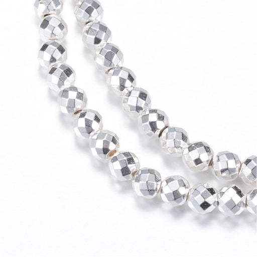 12399 Hematit facetterad 4 mm. Silver. 1 sträng