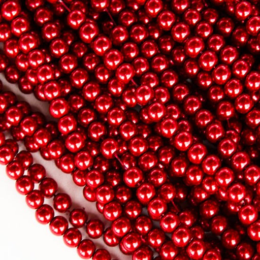 Glaspärla, rund röd, 6 mm 1 sträng (13378)
