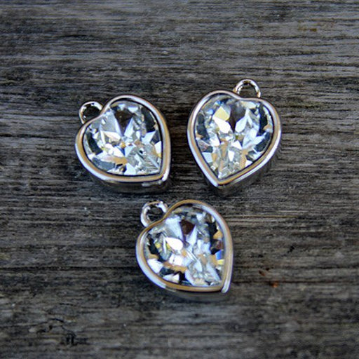 Hjärta 10 mm vitt guld med swarowskikristall