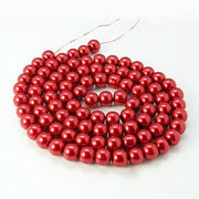 Glaspärlor. 4 mm. Hål 1 mm. Röda. 1 sträng ca. 216 pärlor, B052