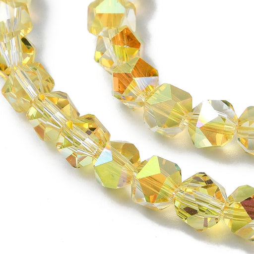 Glas facetterad polygon, gul, 6 mm, 1 sträng (13824)