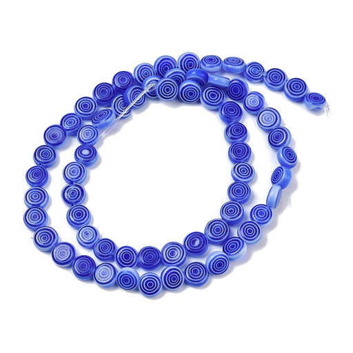 Handgjord Lampworkpärla flat rund Mått 6x3 mm Hål 0,5 mm Ca 65 st/sträng
