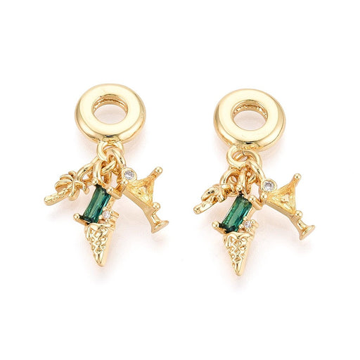 Hänge med berlocker, klänning, väska och stjärna, guldpläterade Emalj och Cubuc Zirconia Mått 30 mm Hål 4,8mm