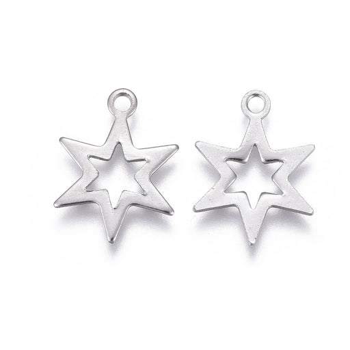 Stjärna rostfritt stålStorlek 14x11 mmTjocklek 0,8 mmHålstorlek 1,5 mm.