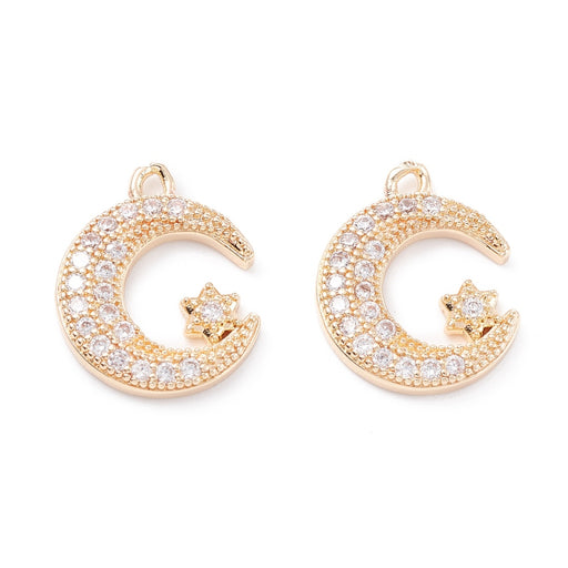 Måne med stjärna , Cubic Zirconia, guld, 15x12x2 mm, 1 st, (12856)