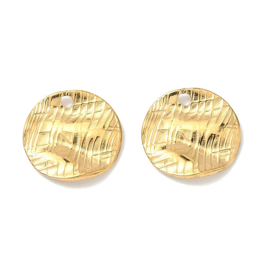 Runt vågigt hänge i rostfritt stål, guldpläterat Storlek 18x18x1 mm Hål 2,5 mm