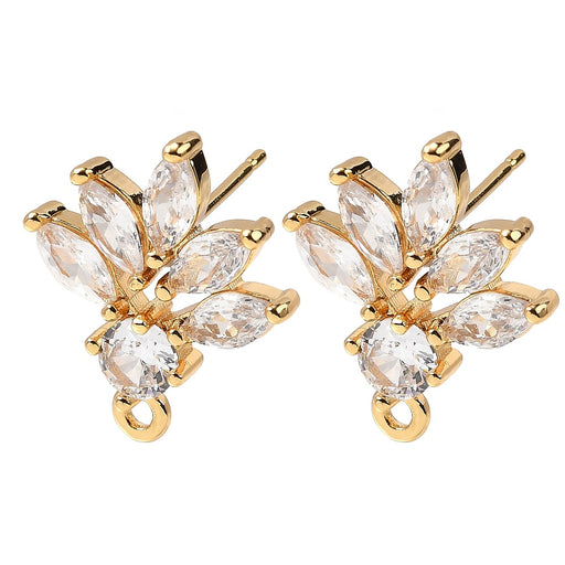 Stiftörhänge blomma med Cubic Zirconia, guld, 18x15 mm, 1 par, (14123)
