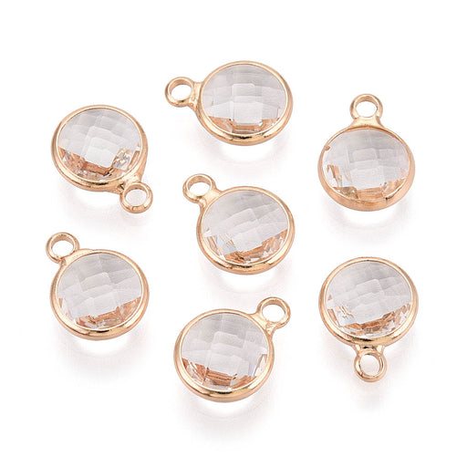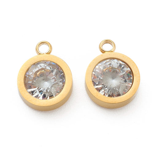 Hänge, rundel med facetterad kristall, 304 rostfritt stål, guldpläterat Storlek 10x9x4 mm Hål 1,8 mm