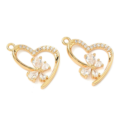 Hjärta med Cubic Zirconia, guld, 15x17x3 mm, 1 st (14135)