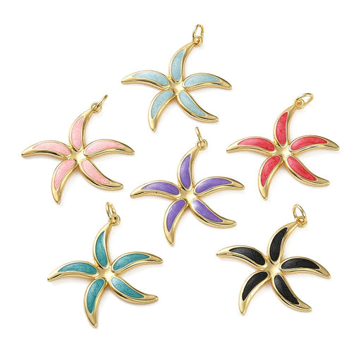 Sjöstjärnor i blandade färger med emalj, 18K guldpläterade Storlek 29x27x2 mm Hål 3 mm Ringen 5x1 mm