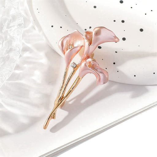 Brosch, Liljor i emalj, guld,rosa, 1 st (14205)