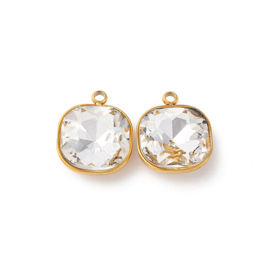 304 rostfritt stål platta med glas cabochon, guldpläterad Mått 17x14x2mm Hål 2mm Plattan 12mm