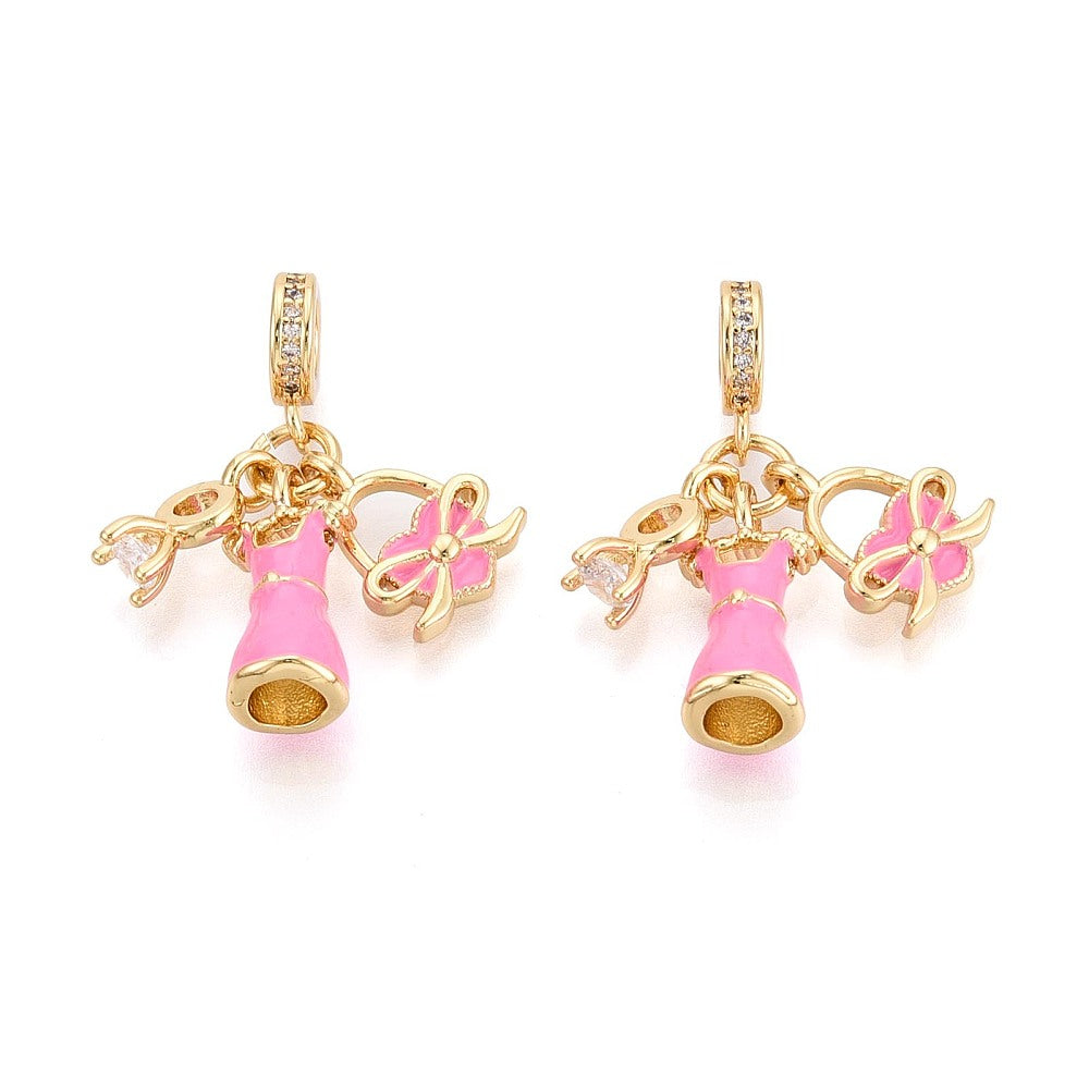 Hänge med berlocker, klänning, väska och stjärna, guldpläterade