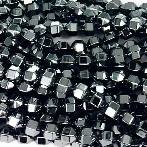 BeskrivningHematit kuber med rundade hörn. 4x4 mmHålstorlek 1 mmCa. 100 pärlor/sträng.