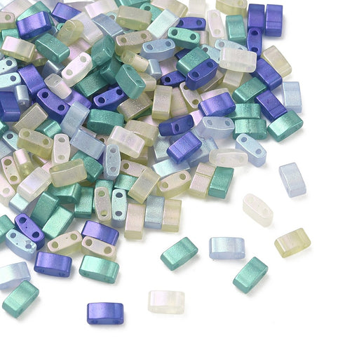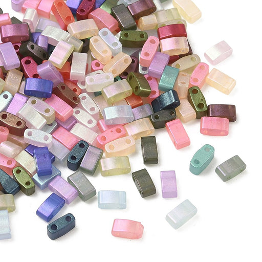 Glaspärlor, rektanglar med 2 hål i blandade färger Storlek 5 x 2,5 x 2 mm Hål 0,8 mm Ca 200 st/sträng