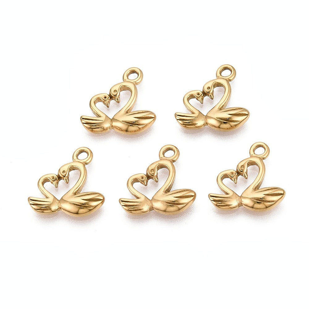 Svanar, Rostfritt stål, guld, 15x15 mm, 1 st (14079)