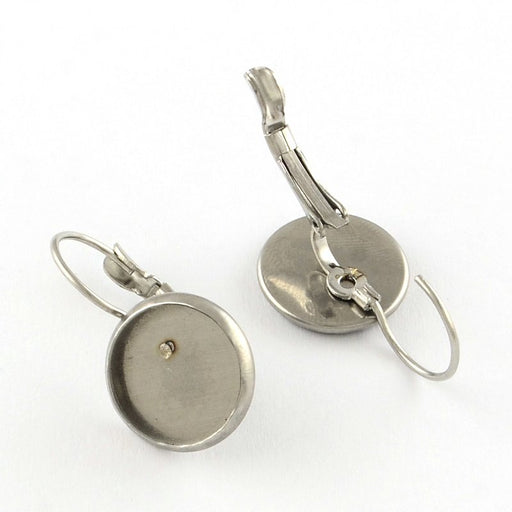 Öronhänge med bricka till cabochon 12 mm, Rostfritt stål, 1 par, (12206)