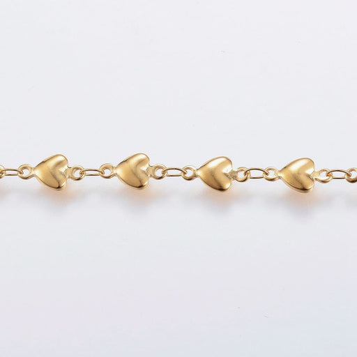 Kedja, Rostfritt stål, hjärtan, guld, 1m, (12744)