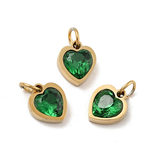 Hjärta, Cubic Zirconia, grönt, Rostfritt stål, guld, 1 st, (13241)