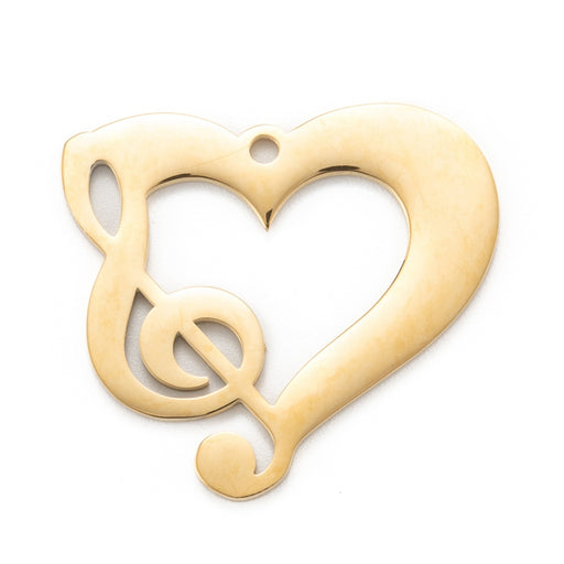 Hjärta med G-klav, Rostfritt stål, guld, 1st, (12723)