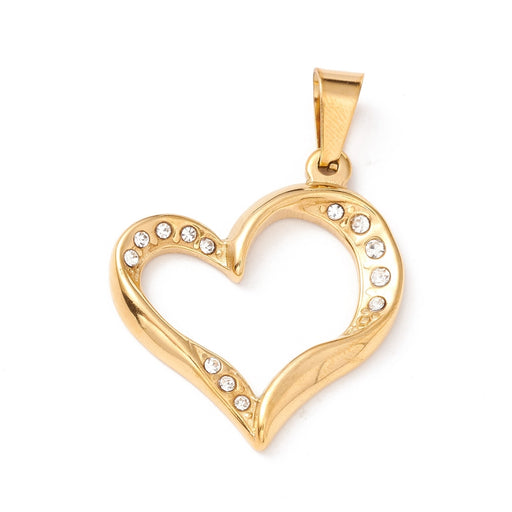 Hjärta i 304 rostfritt stål och med Rhinestone, Guldpläterat Mått 28x25.3,5mm Hål 9x4,5m