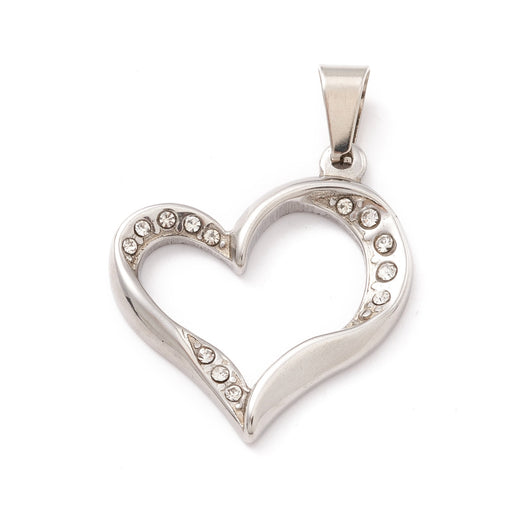 Hjärta, Rostfritt stål, med rhinestones, 1st, (12840)