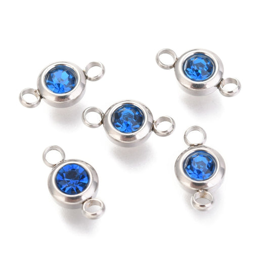 Connector, Rostfritt stål, Rhinestone, blå, 1 st (13140)