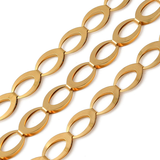Guldpläterad kedja i 304 rostfritt stål, ovala länkar Mått 15x9x3 mm