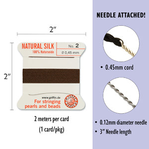 Silkestråd GRIFFIN, Brun, 0,45 mm, 2 m, 1 st INKLUSIVE NÅL, (13348)