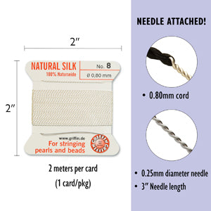 Silkestråd GRIFFIN, Beige, 0,8 mm, 2 m, 1 st. INKLUSIVE NÅL, (13355)