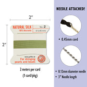 2 meter Silkestråd 0,45 mm med en tvistad metallnål av stål fäst i ena ändan.