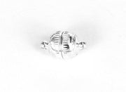 Beskrivning: Magnetlås med struktur, runt silverfärgat Storlek 8x13 mm. Hålstorlek 1,5 mm. |